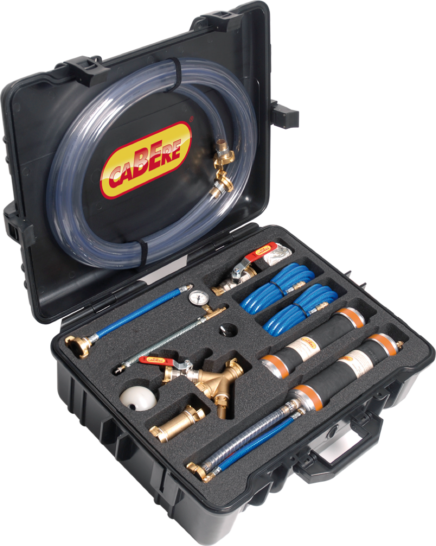 Für die Dichtheitsprüfung mit Luft und Wasser nach DIN EN 1610, inkl. aller Absperrgeräte für Nennweiten 75-150mm, Anschlußarmaturen und Zubehörteilen, komplett im stabilen Transport-Koffer. Auf Grund ihrer hohen Flexibilität sind diese Absperrgeräte sehr bogengängig.