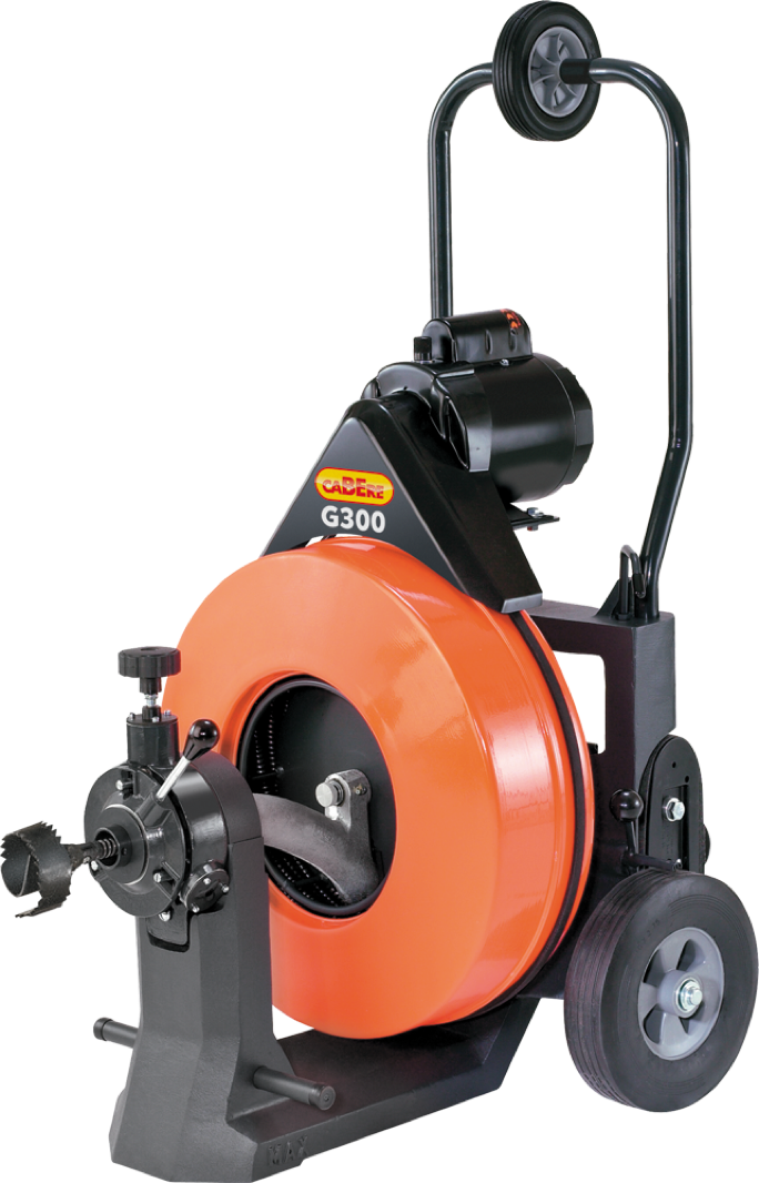 Die G300 kombiniert Wurzelschneidkraft und große Reichweite in einer überraschend kompakten Maschine. Ein starker 3/4 PS Kondensatoranlaufmotor treibt die große Wellen-Trommel mit einem Fassungsvermögen von bis zu 45,5m Flexikern®-Rohrreinigungswelle kraftvoll an. Durch Verlängern kann die Reichweite problemlos vergrößert werden.