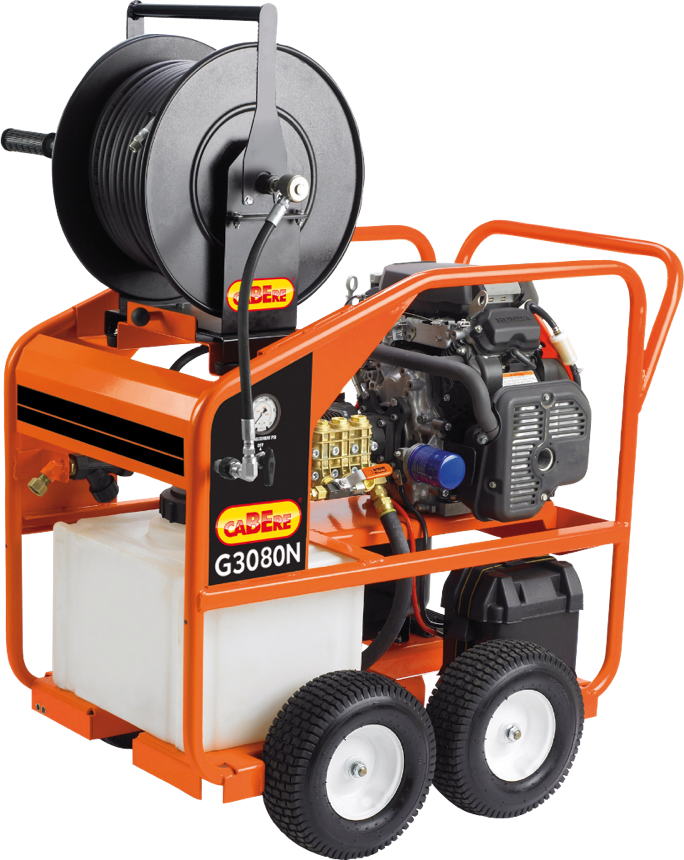 Die G3080N ist eine extrem leistungsstarke und doch mobil einsetzbare Hochdruck- Rohrreinigungsmaschine. Diese Maschine bietet Ihnen die erhöhte Reinigungskraft und Spülleistung von 30 Litern HD-Wasserfluss pro Minute. Die G3080N ist mit einem 45 Liter Puffer-Wassertank ausgestattet. Die Pumpe kann bei Bedarf auf Vibra-Puls®-Betrieb gestellt werden, um den Schlauch besser über lange Strecken oder um enge Bögen vorwärtszutreiben. Die ausbalancierte Konstruktion der G3080N ermöglicht kinderleichtes Manövrieren auf den hinteren Rädern bei maximaler Wendigkeit und die Feststellbremse sorgt im Betrieb für sicheren Stand.