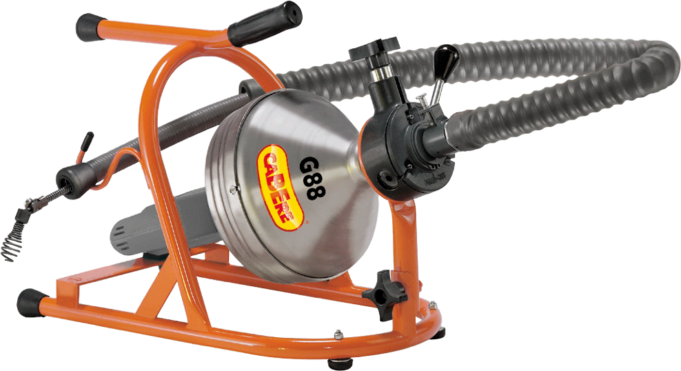 Ausgerüstet mit stufenlos regelbarem Automatikvorschub, stufenloser Drehzahlsteuerung per Pneumatik-Fußschalter und einem Wellenführungsschlauch von 120cm Länge macht die G88 Rohrreinigungsarbeiten sauberer und einfacher. Die Maschine arbeitet in waagerechter wie in senkrechter Position und kann bis zu 15m Welle in der Aluminium-Trommel aufnehmen. Ideal für lange Rohrleitungen DN40 und DN50 z. B. im Altbaubereich!